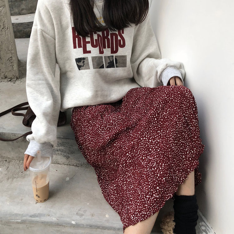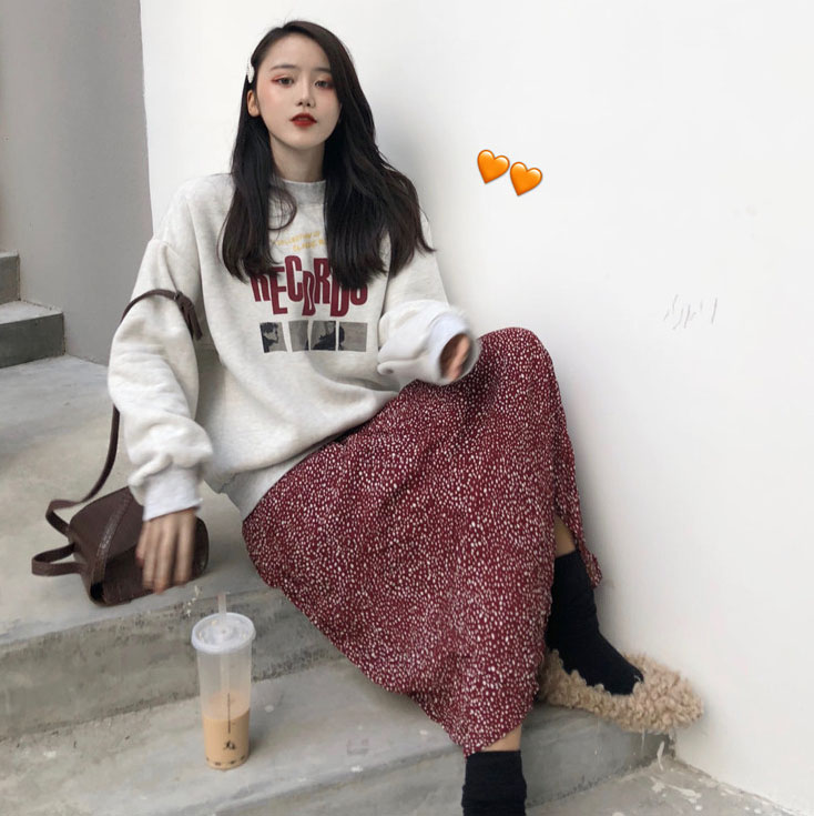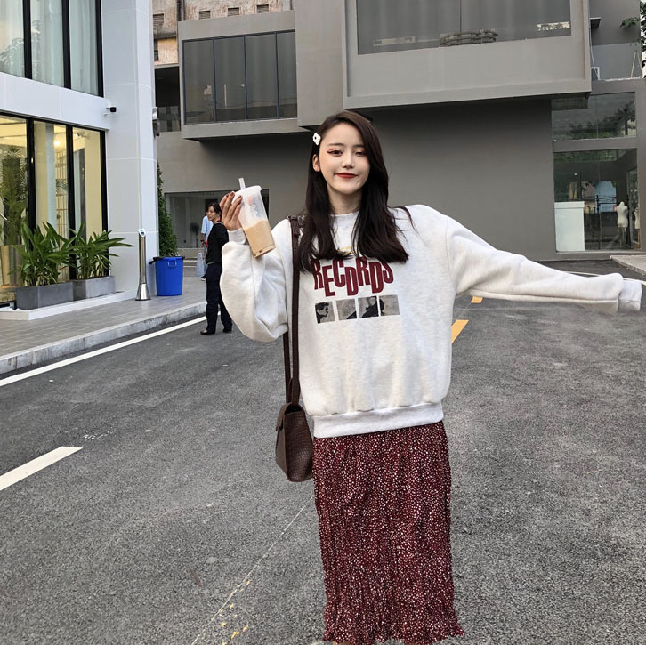 / 復古立領長袖保暖加絨套頭衛衣女秋冬2018新款+碎花半身裙女套裝