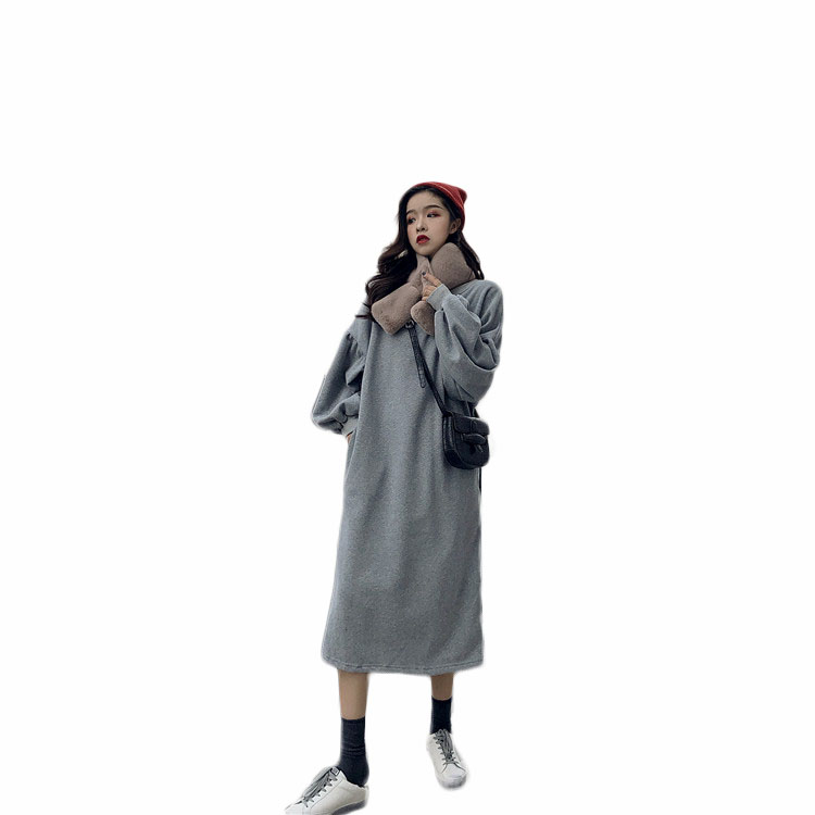 復古韓國chic泡泡袖慵懶風長款寬松顯瘦百搭加絨衛衣裙女2018新款