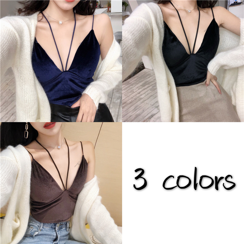 / 2018新款chic性感露背打底絲絨胸墊吊帶裹胸女秋季純色修身背心潮