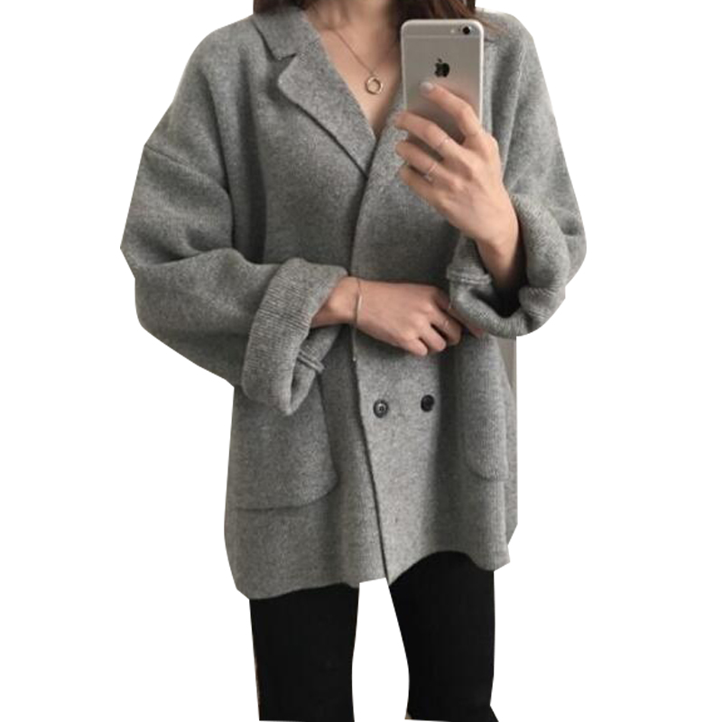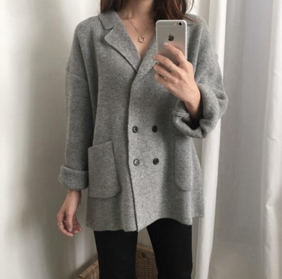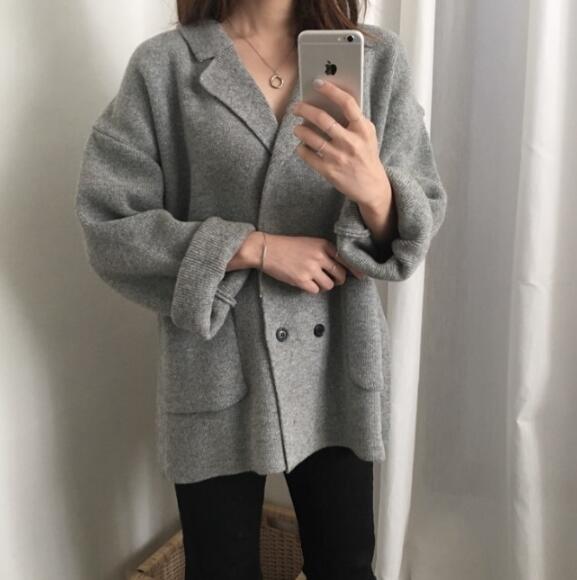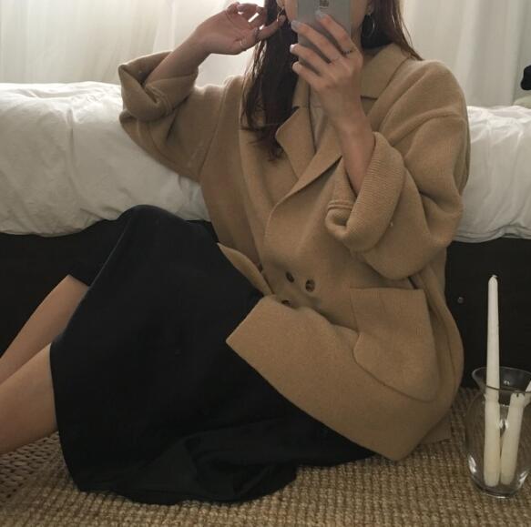 / 小香風韓版寬松時尚復古chic風百搭雙排扣毛衣針織開衫毛呢外套女