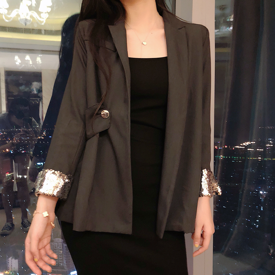 港味復古氣質拼接袖百搭小香風秋季新款韓版chic時尚小西裝外套女