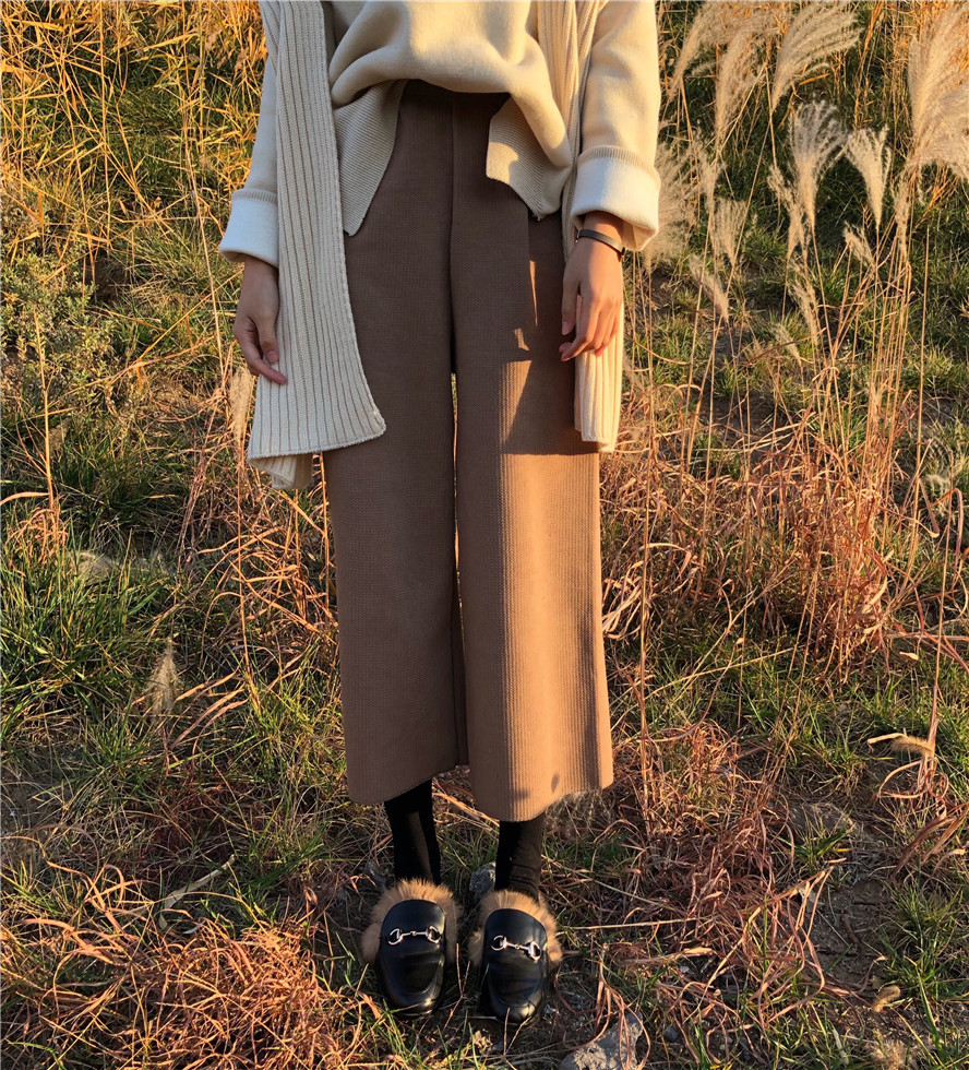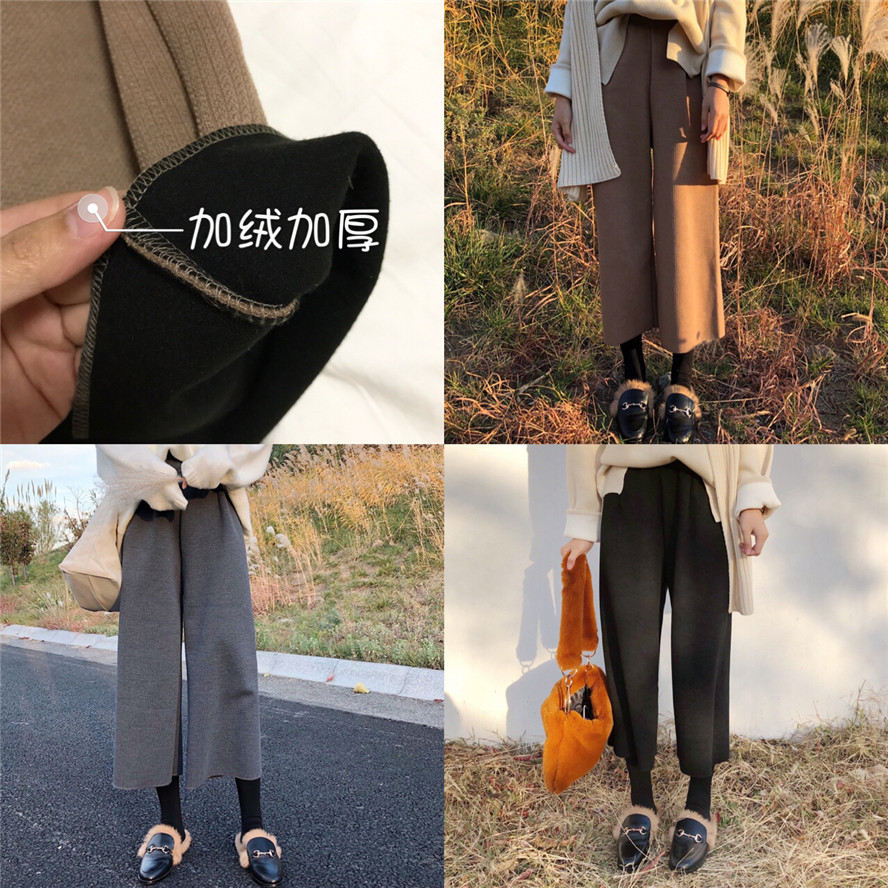 / 2018秋冬新款韓版褲子舒適松緊腰百搭純色學生闊腿褲寬松九分褲女