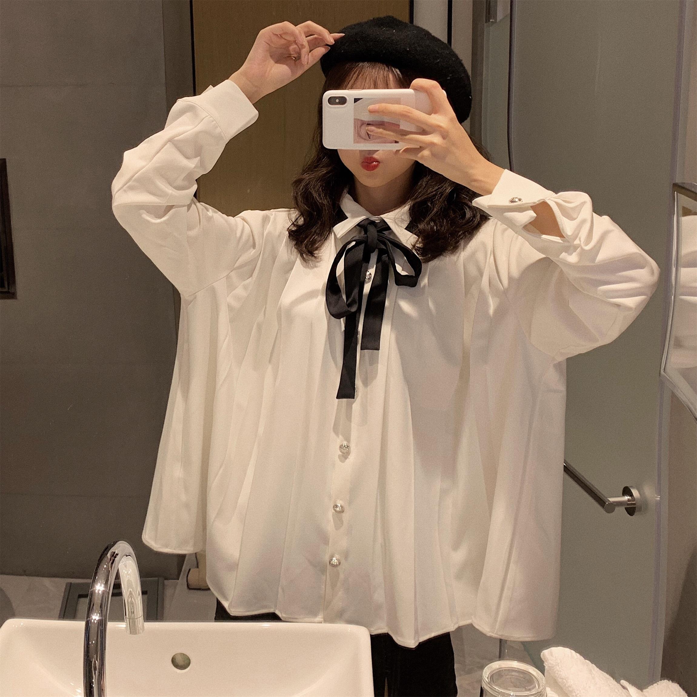 / 冬季新款寬松斗篷千鳥格毛呢大衣外套女領帶長袖襯衫港風時尚套裝