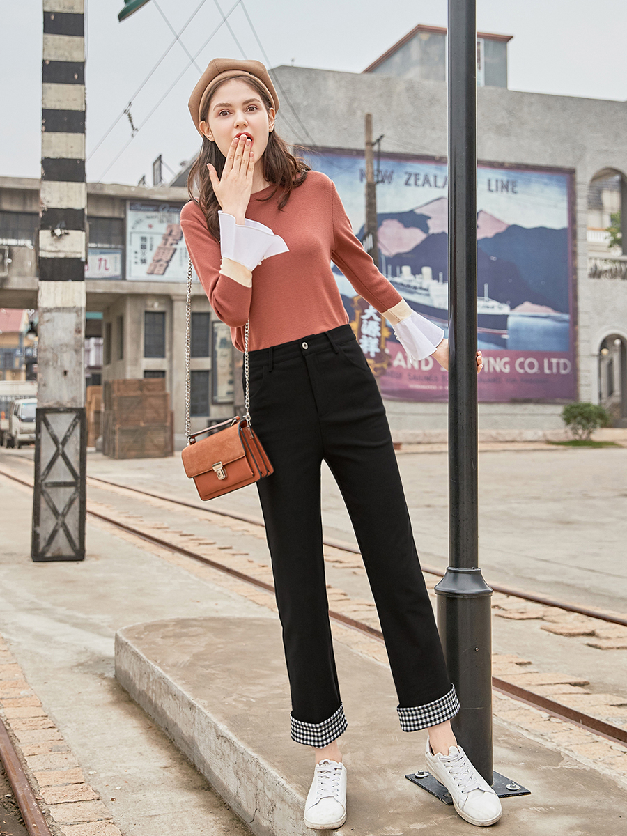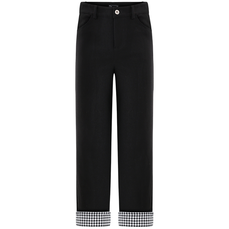 MG小象黑色加絨休閑褲女外穿冬季2018新款學生寬松高腰直筒褲子潮
