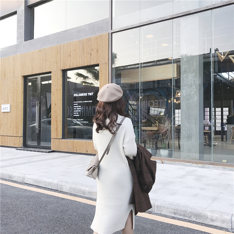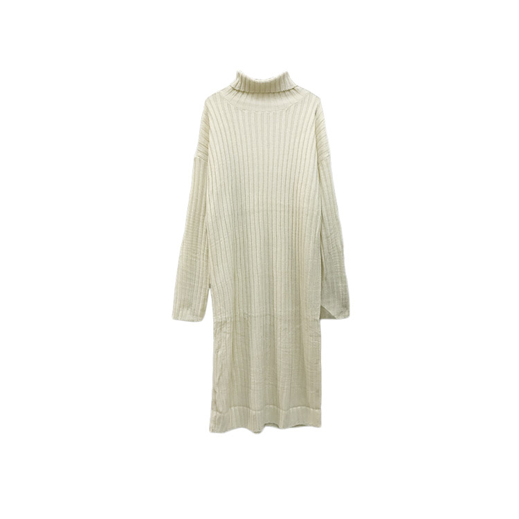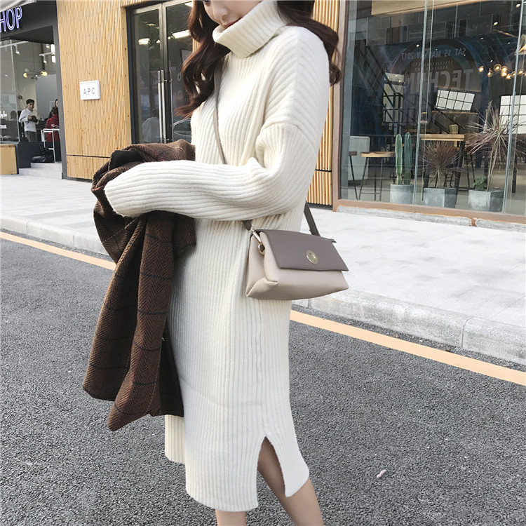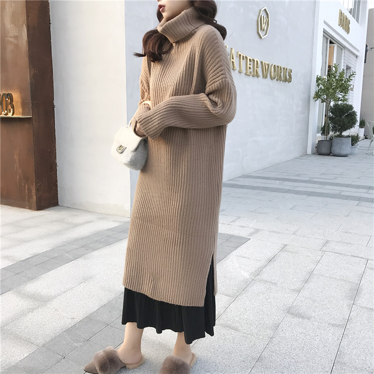 復古網紅毛衣女2018新款秋冬長款高領寬松加厚百搭慵懶坑條毛衣裙