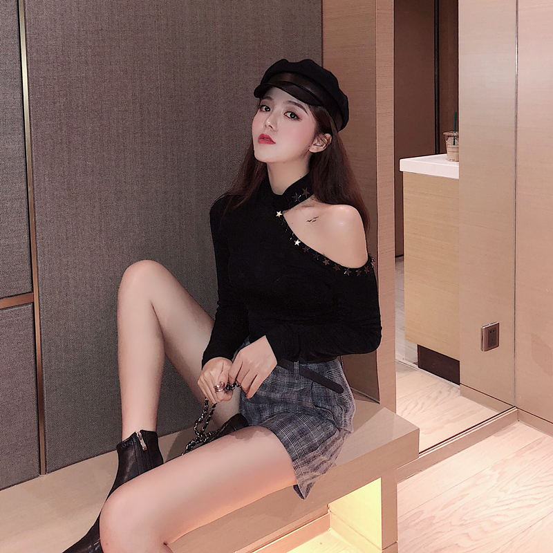 / 設計感套裝女心機露肩T恤高腰格子短褲兩件套秋裝時尚潮2018新款