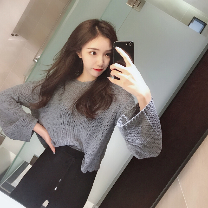 / 新款秋季韓版長袖短款針織衫套頭毛衣高腰闊腿褲針織長褲時尚套裝