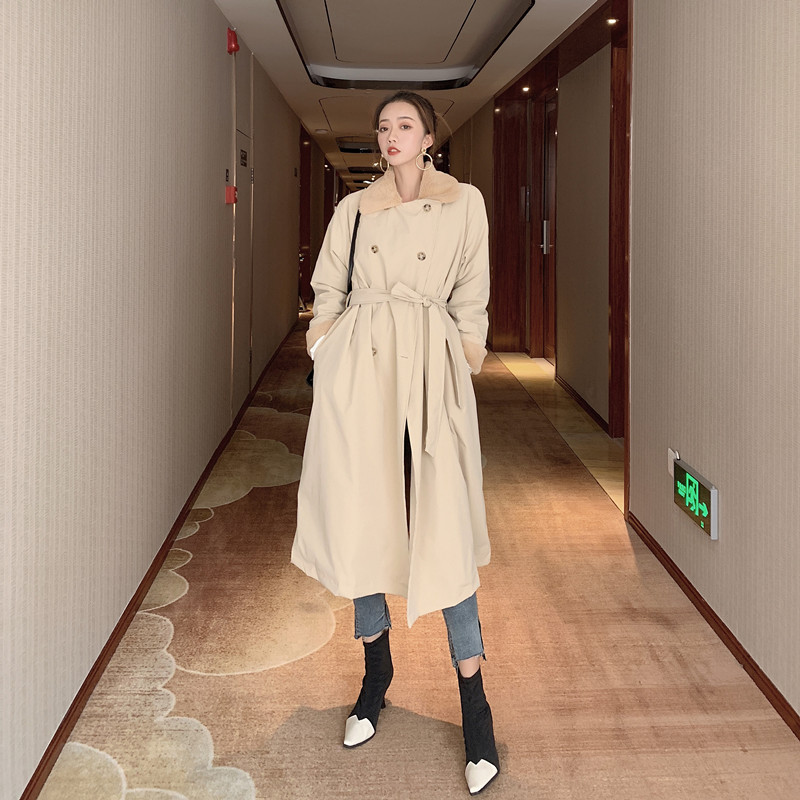 2018小香風冬季新款寬松中長款加厚chic大衣百搭系帶風衣外套女裝