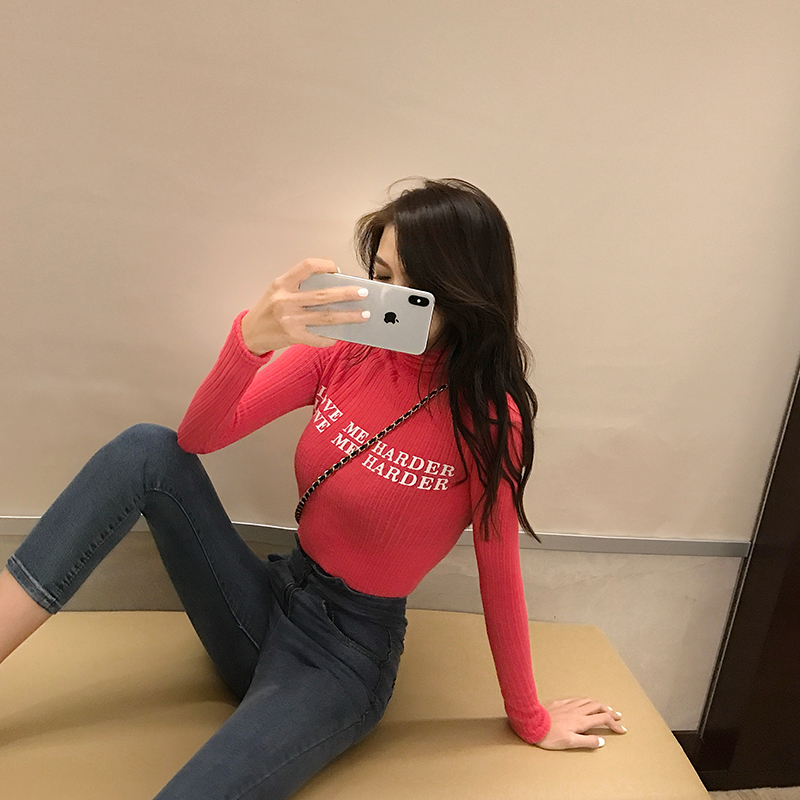 chic上衣女新款韓版秋冬百搭修身顯瘦高領復古長袖打底針織衫T恤