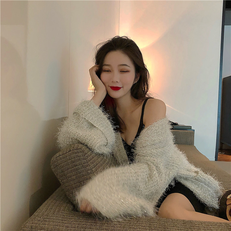 秋季慵懶風閃閃加厚毛衣外套女2018新款韓版寬松百搭針織開衫外搭