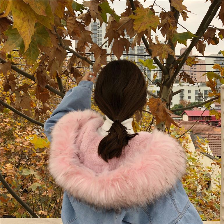 / 2018秋裝新款韓版時尚氣質百搭加絨牛仔連帽大毛領棉服保暖外套女