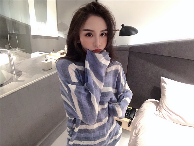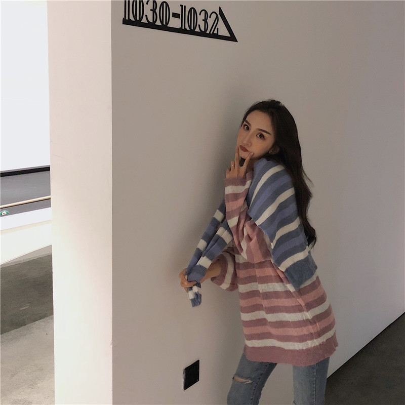 / 撞色條紋上衣女寬松顯瘦中長款百搭秋季chic基礎款薄款長袖針織衫