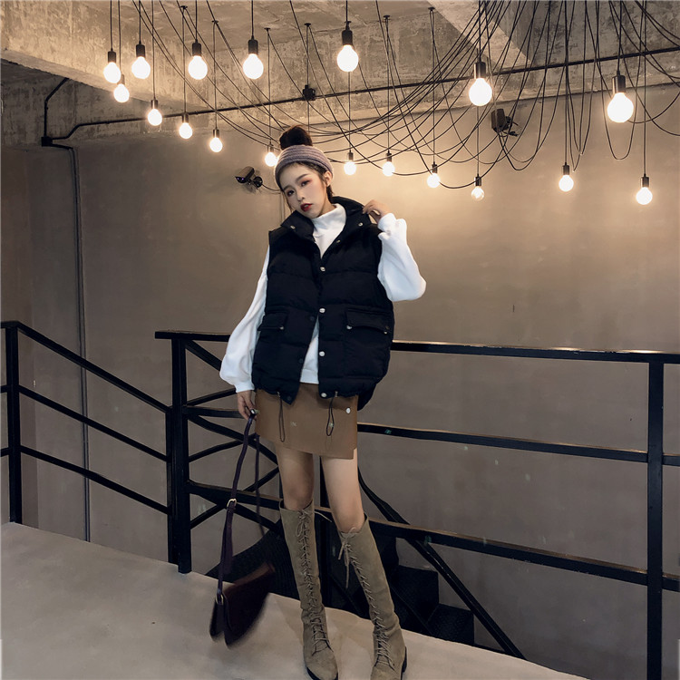 港風顯瘦無袖保暖加厚棉馬甲慵懶百搭寬松外套女2018新款冬季棉衣