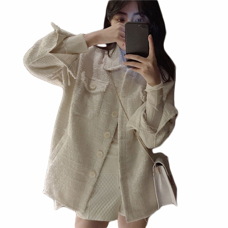 外套女春秋2018新款時尚chic簡約寬松顯瘦中長款呢子外套女配腰帶