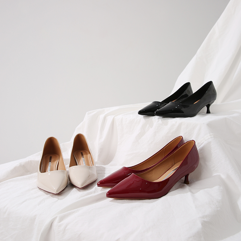 MG小象細跟高跟鞋女2018新款韓版性感時尚單鞋淺口尖頭純色皮鞋潮
