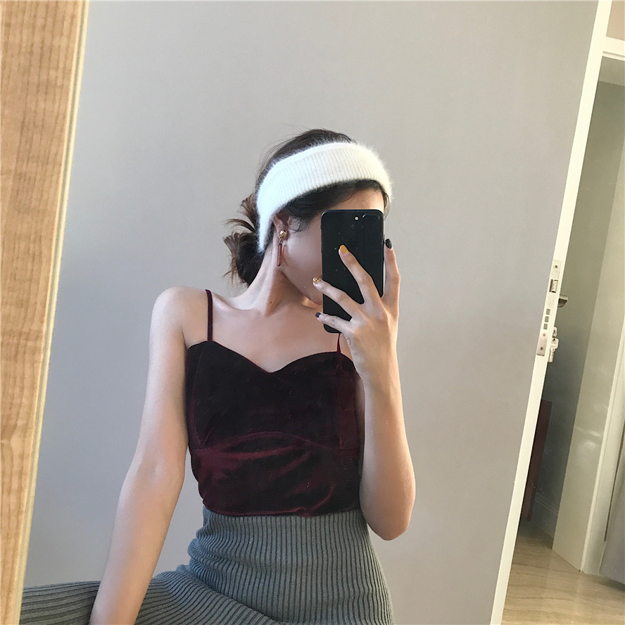 / 復古港味chic性感氣質絲絨裹胸收腰上衣修身顯胸V領背心吊帶女春