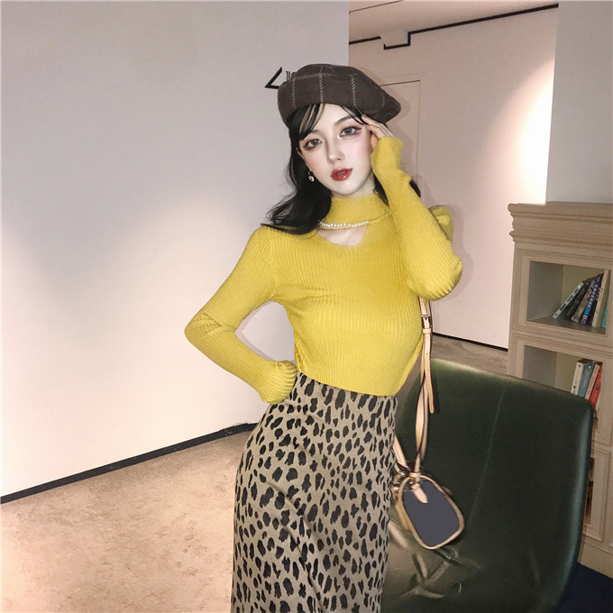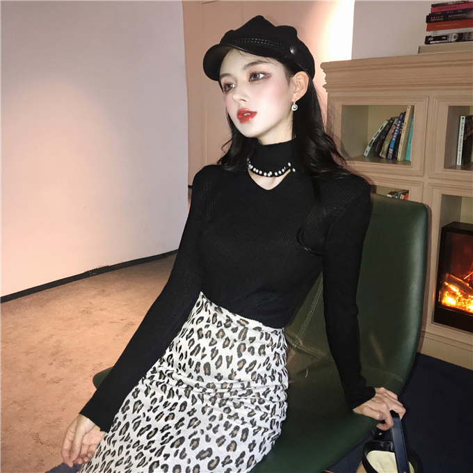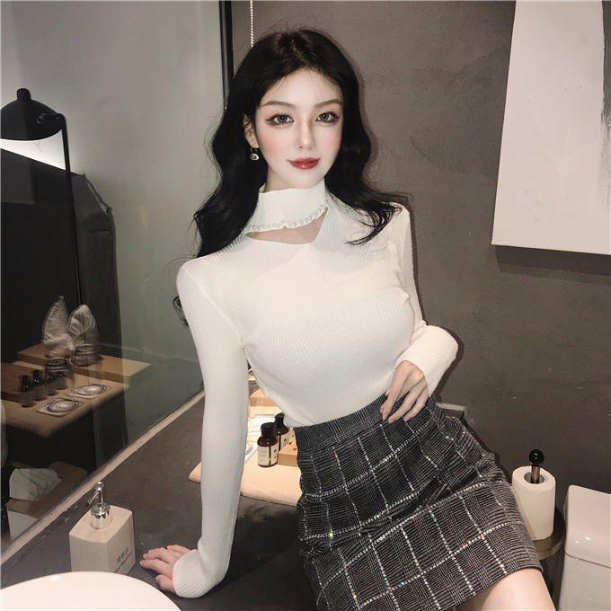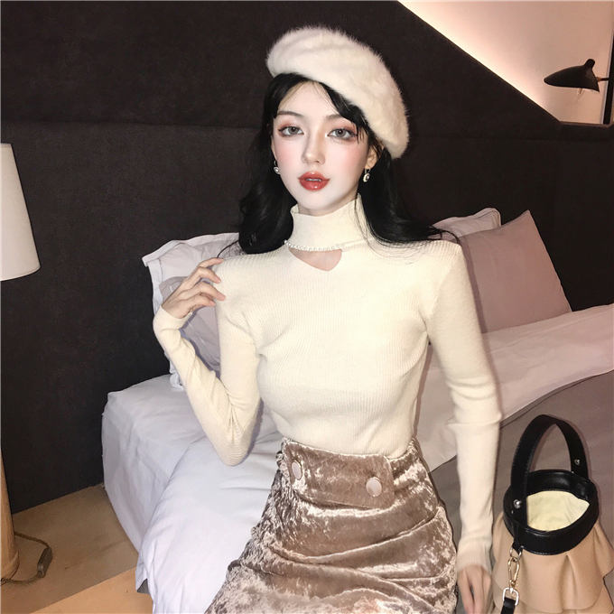 2018秋冬新款韓版上衣chic時尚百搭高領釘珠顯瘦修身長袖針織衫女