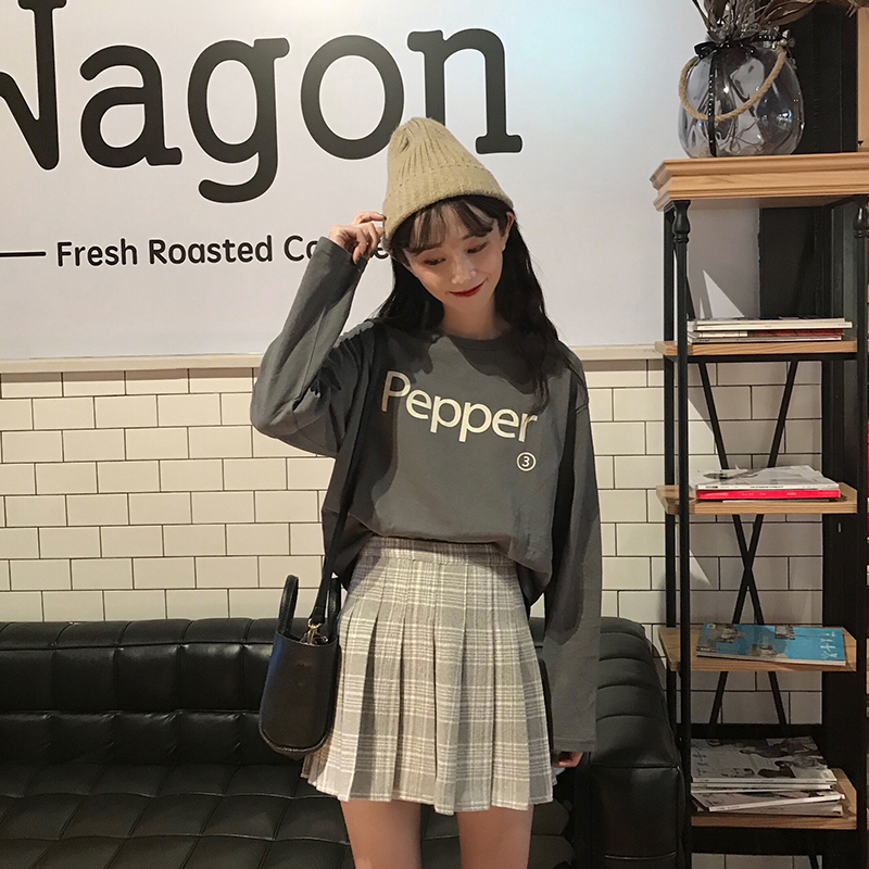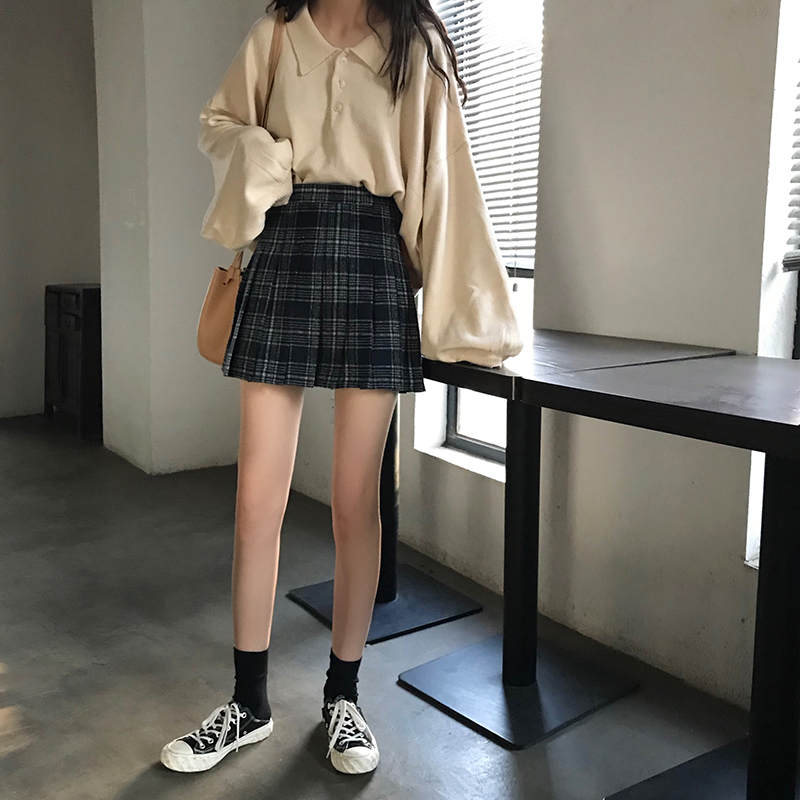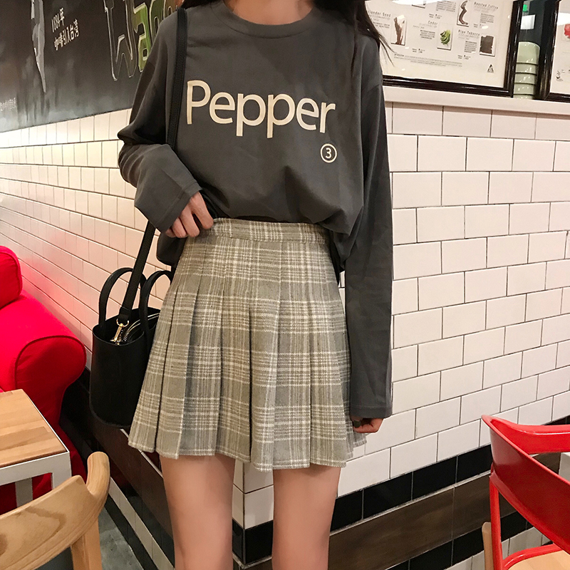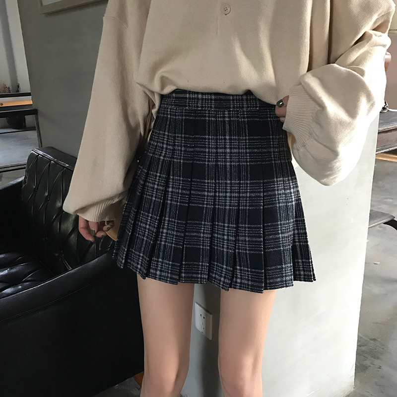 裙子女2018秋冬韓版新款chic寬松高腰格紋百搭半身裙a字裙百褶裙