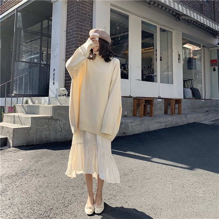 / 慵懶風寬松顯瘦高領長袖套頭毛衣女2018新款韓版純色加厚針織上衣