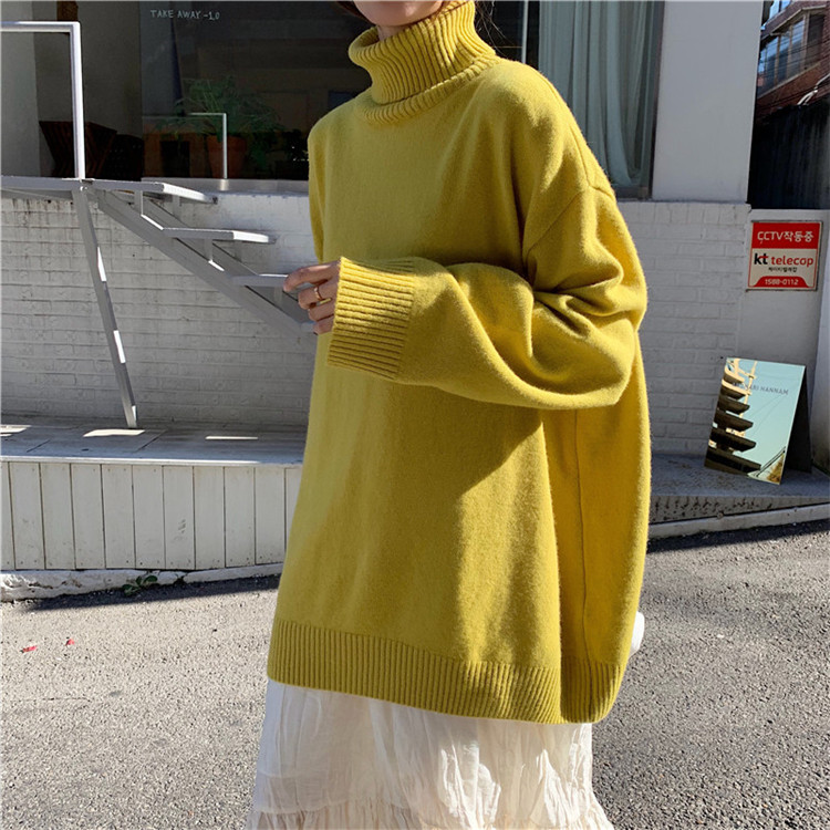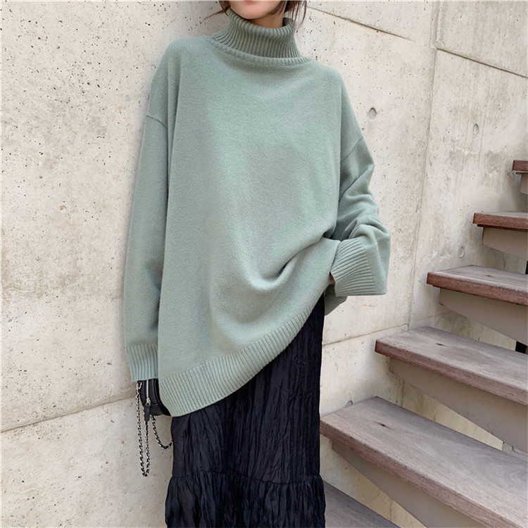 慵懶風寬松顯瘦高領長袖套頭毛衣女2018新款韓版純色加厚針織上衣