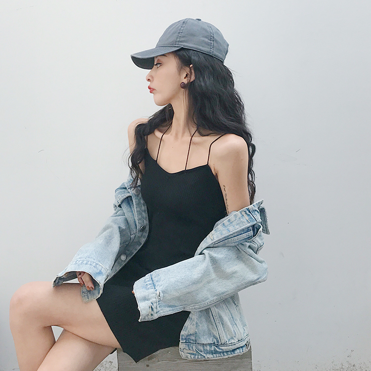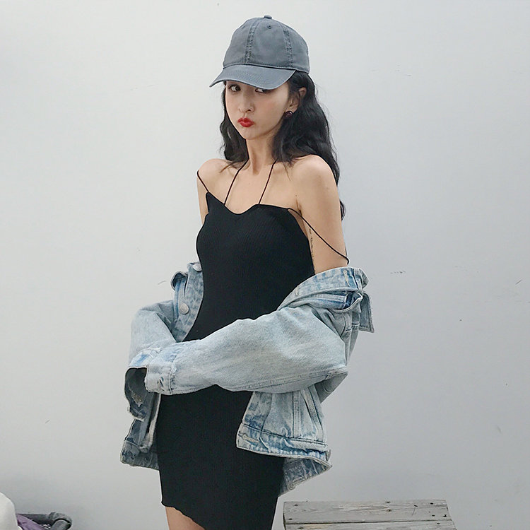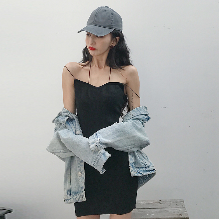 / 港味復古chic韓風新款顯瘦掛脖針織純色百搭打底吊帶小清新連衣裙