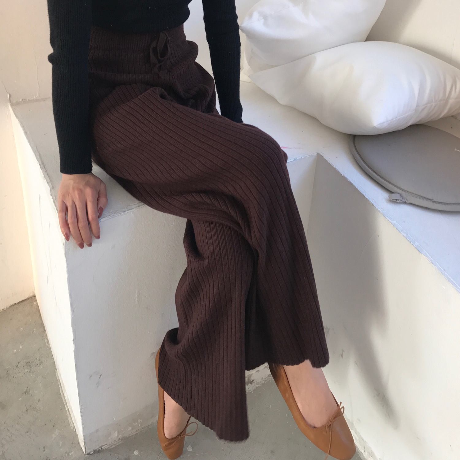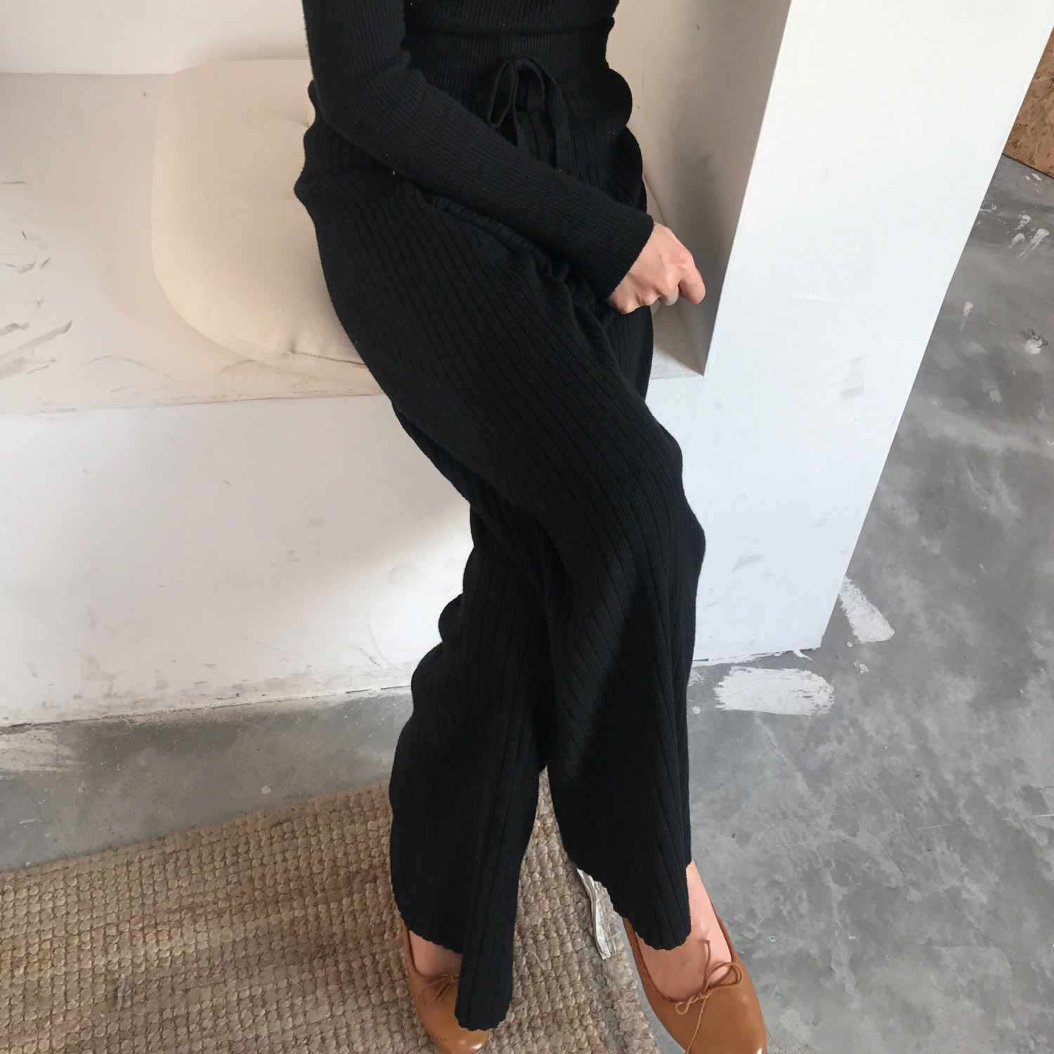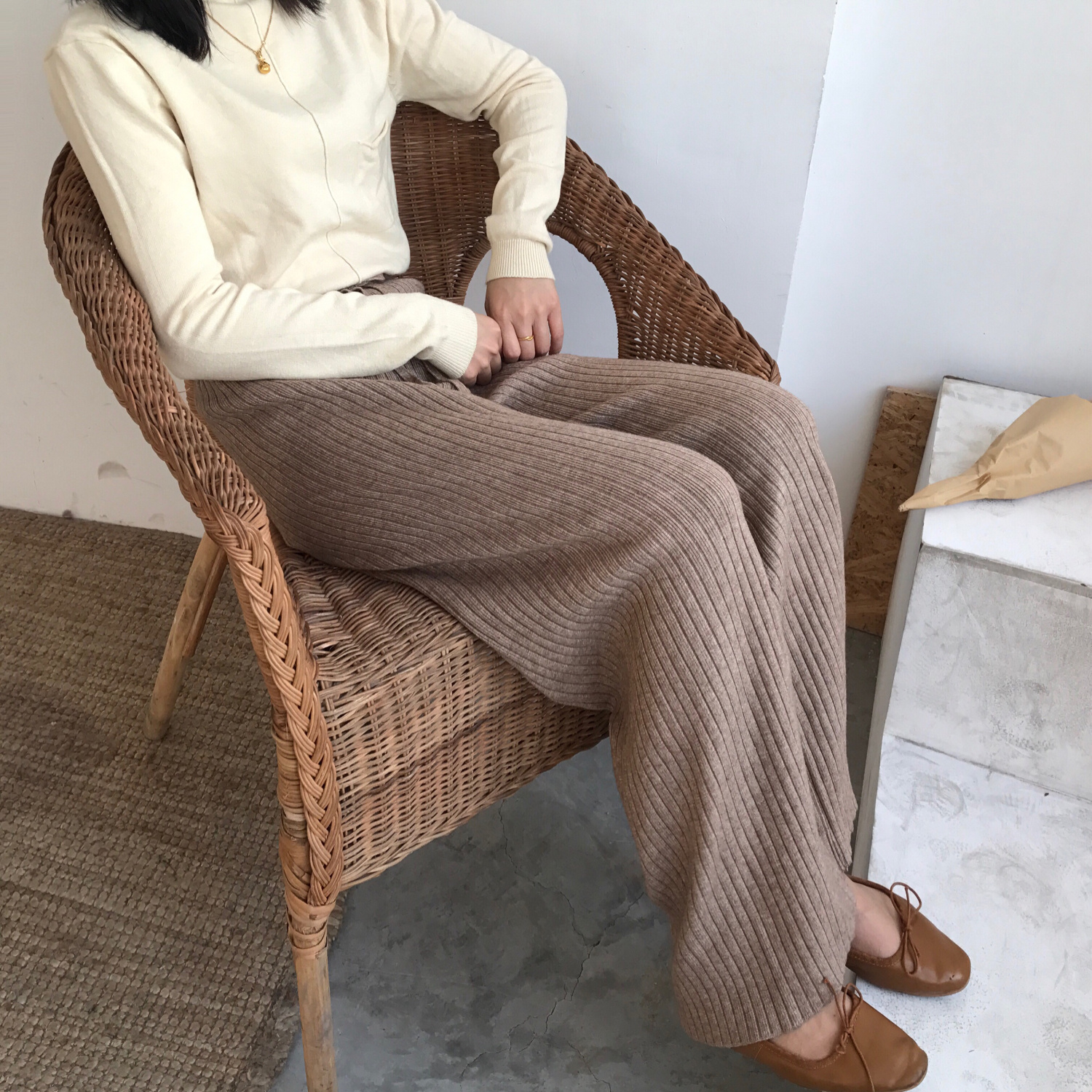 / 褲子女2018新款百搭顯瘦chic復古風格簡約秋冬學生針織闊腿長褲潮