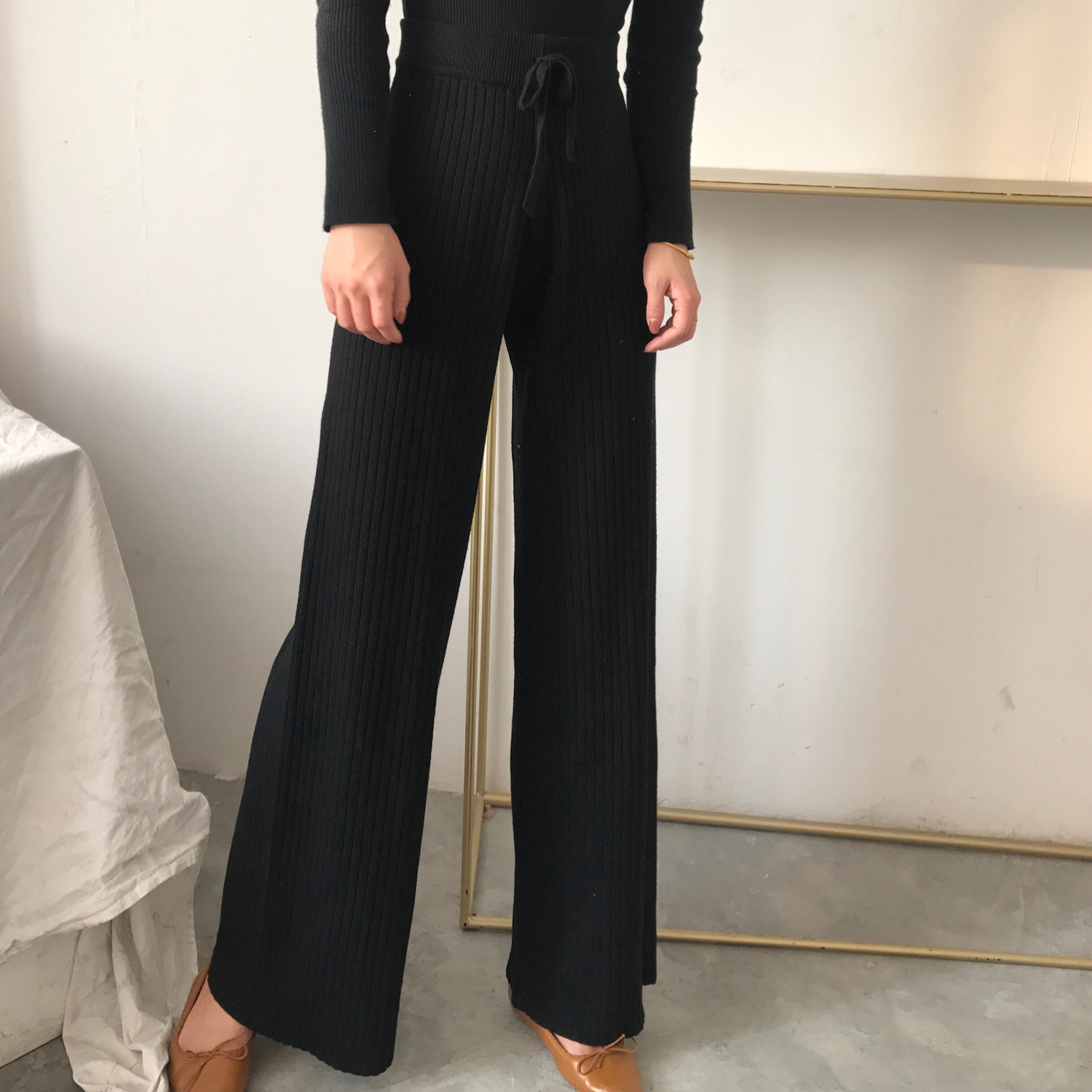 褲子女2018新款百搭顯瘦chic復古風格簡約秋冬學生針織闊腿長褲潮