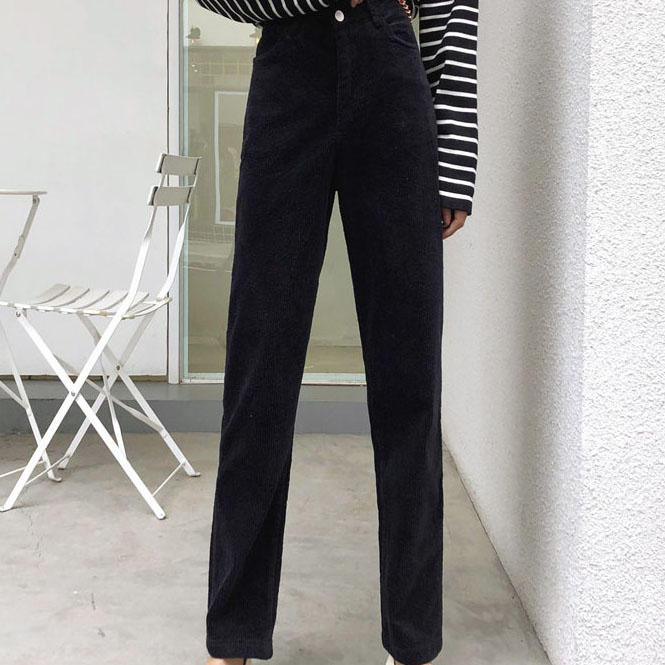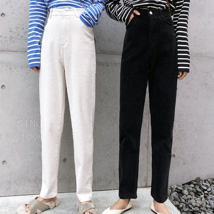 / 高腰燈芯絨褲子女秋冬2018新款寬松韓版條絨九分顯瘦哈倫褲休閑褲