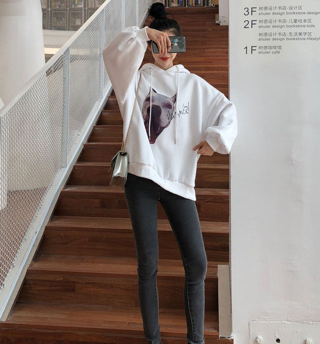 / chic上衣慵懶風寬松衛衣女秋冬2018新款韓版時尚連帽加絨印花衛衣
